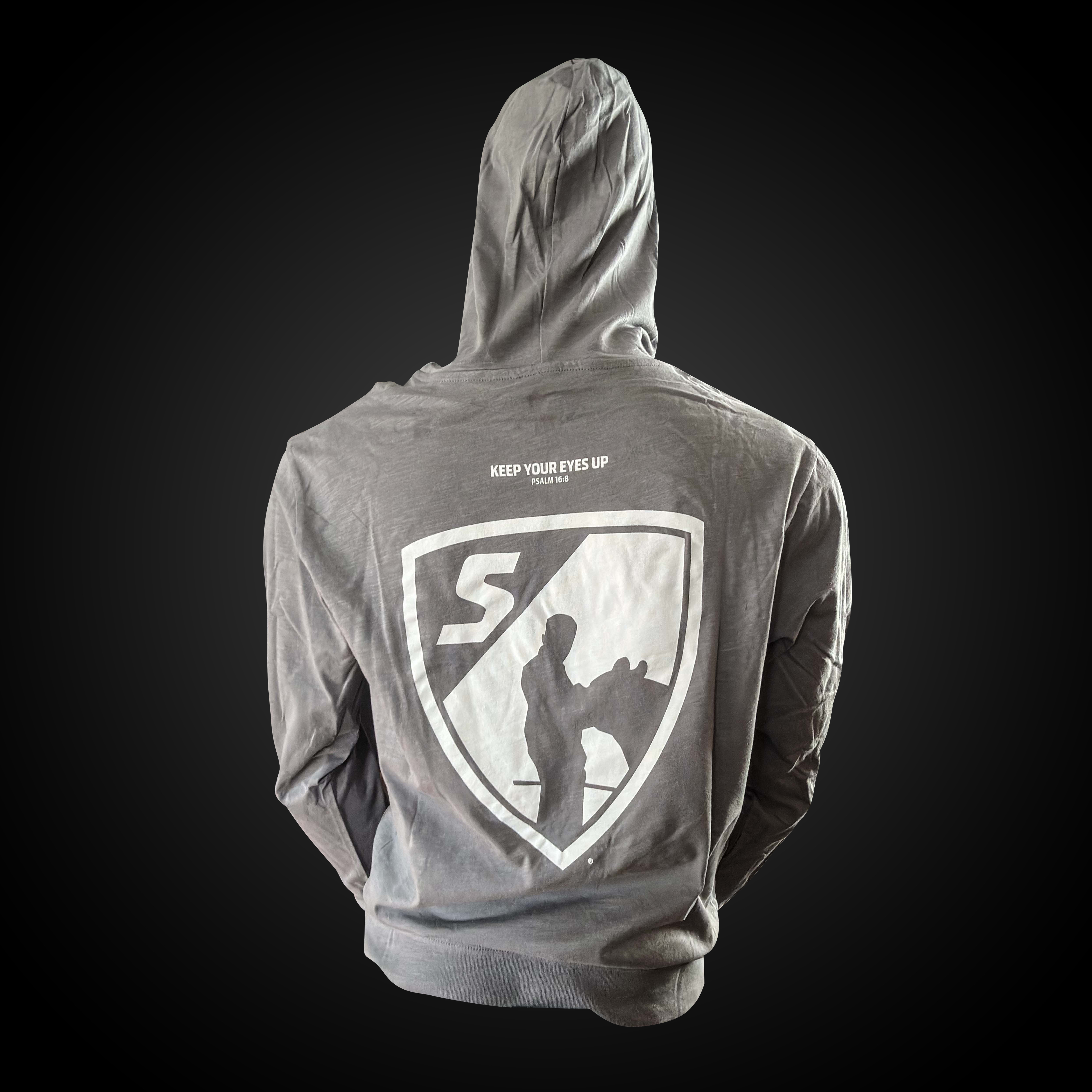 BACK: Showtimes Shield with "Keep Your Eyes Up | Psalm 16:8" Printed in White